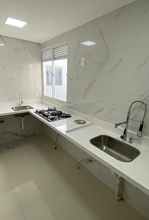 A bancada em porcelanato é a combinação perfeita de resistência, beleza e praticidade. Ideal para o dia a dia, suporta altas temperaturas, é fácil de limpar e traz um toque sofisticado para sua cozinha.